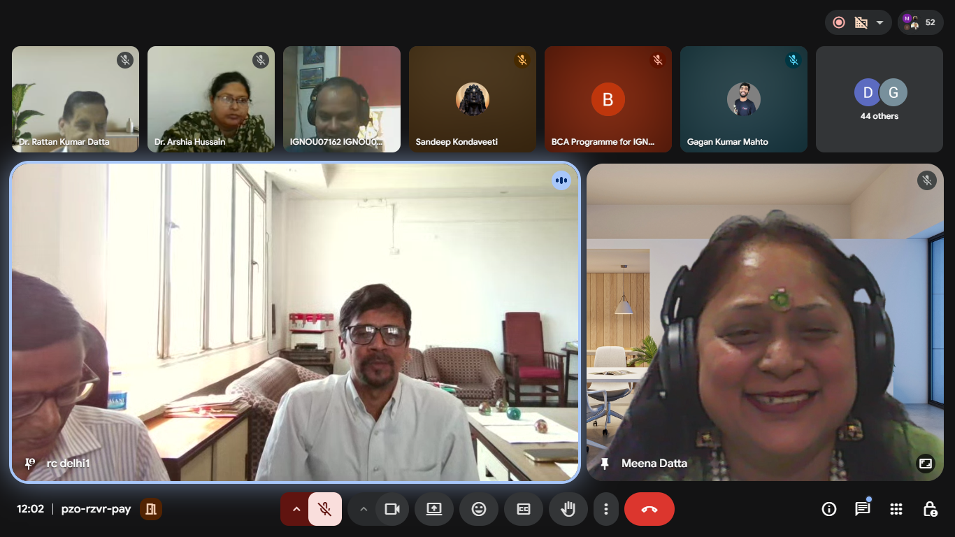 3. An Induction Meeting for newly admitted learners of BCA, MCA (New), and PGDCA programs was held at MERIT on 11th April 2025.The session began with a warm welcome by Mr. Tusar Ranjan Sarangi, who introduced the participants to MERIT and its academic environment.Dr. Rattan Kumar Datta, Director of MERIT, addressed the learners and emphasized the importance of distance education. He encouraged students to attend classes regularly and remain consistent in their academic efforts. The event was graced by the presence of Dr. M.A. Laskar, Regional Director, IGNOU Regional Centre Delhi-1, and Dr. A. Rehman, Assistant Regional Director, who shared valuable insights with the learners.